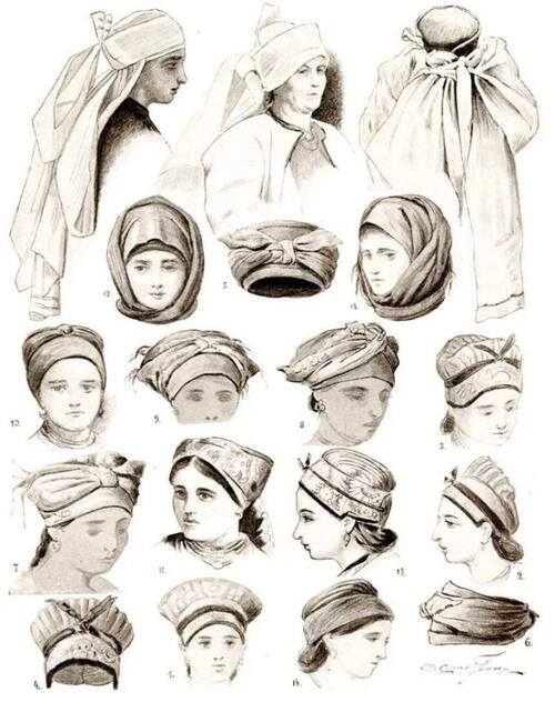 Для заміжніх жінок хустки були обовʼязкові, адже таким чином жінка підтверджувала свій сімейний статус, також хустки (переважно чорні) носили удови. Незаміжні дівчата теж могли вдягти хустку, щоб сховатися від спеки та холоду, але частину волосся не ховали й часто прикрашали їх квітами. Зазвичай хустки шили з полотен, вплітаючи шовк чи вовну та прикрашаючи їх вишивкою, орнаментами чи візерунками. Ось лише декілька схем повʼязання хустини: